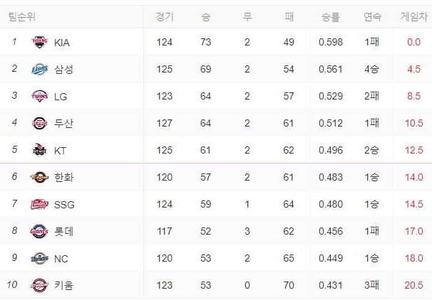 - 2023 성적 : 6위, 73승 2무 69패
