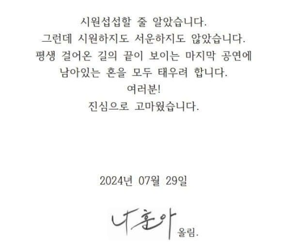 티켓 오픈 일정에 맞춰 예매를 서두르시고, 나훈아의 마지막 무대를 함께하시길 바랍니다.