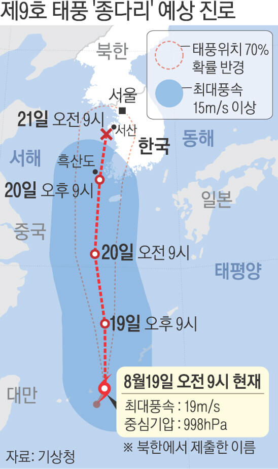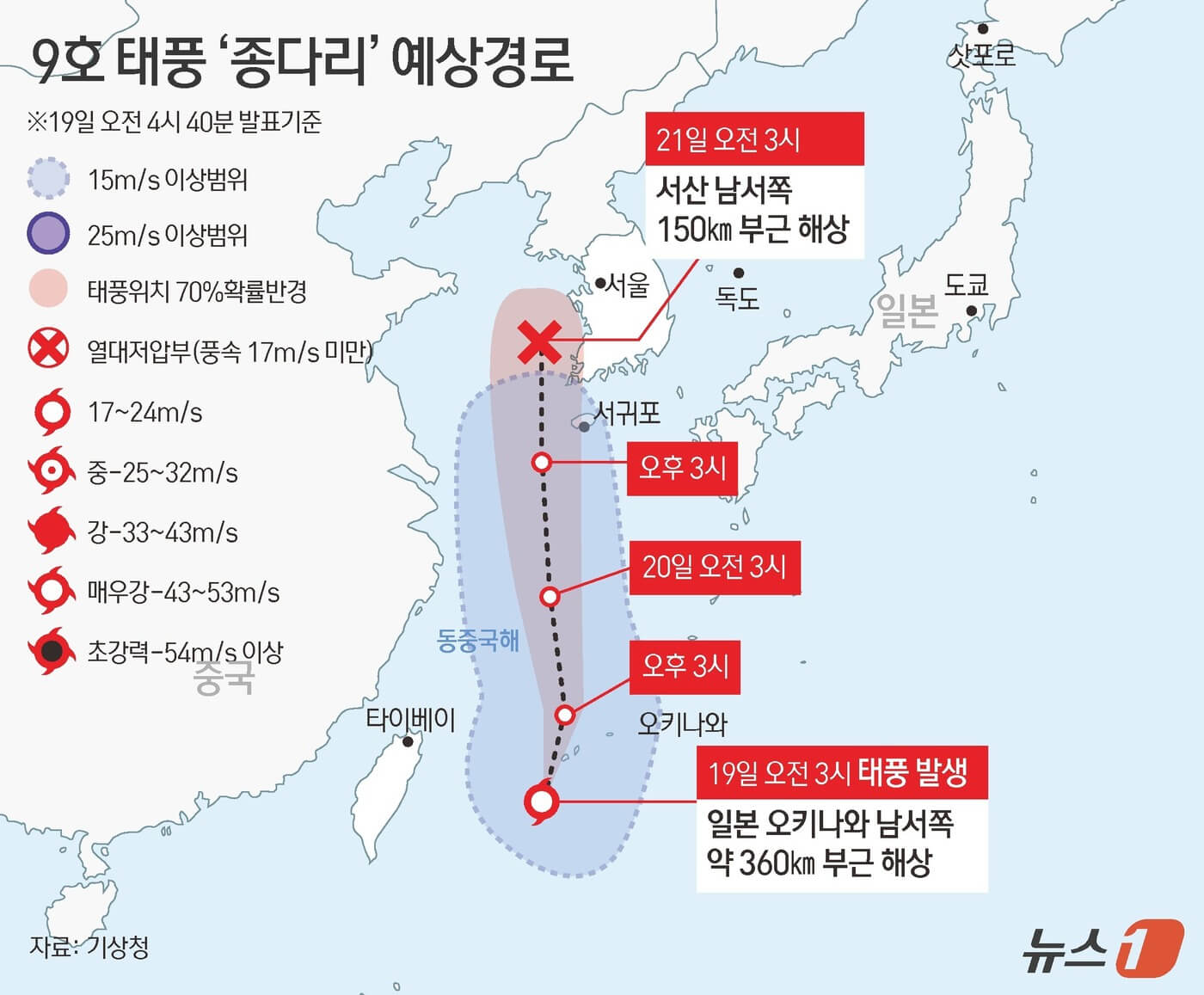태풍 종다리 이름 뜻 현재 위치 예상 경로