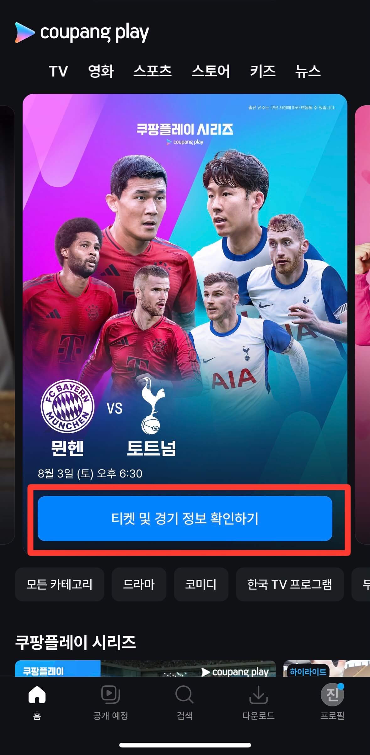 토트넘 뮌헨 경기는 쿠팡플레이를 통해 실시간 중계되며, 쿠팡플레이 앱 또는 홈페이지에서 시청 가능합니다.
