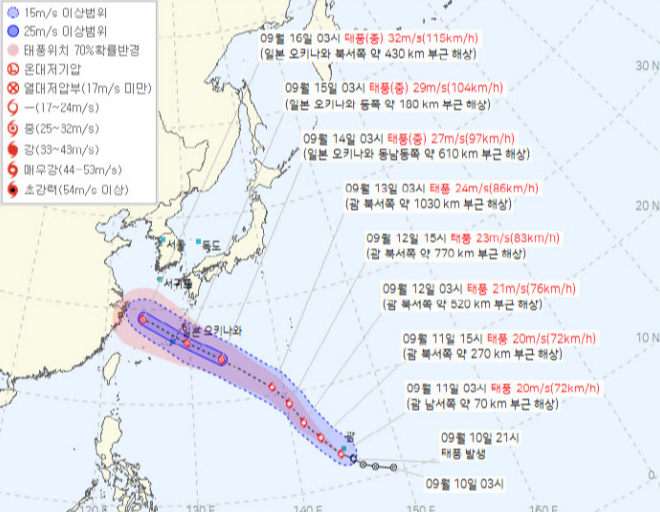 추석 연휴 동안 한반도 남부와 제주도 등 일부 지역에 간접적인 영향이 예상되므로, 최신 기상 예보를 주의 깊게 확인하고 대비책을 마련하는 것이 좋습니다. 앞으로도 태풍의 경로와 기상 변화를 지속적으로 모니터링하며 안전한 연휴를 준비하시기 바랍니다.