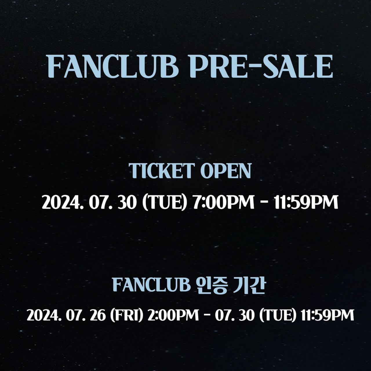 • 팬클럽 선예매 : 2024년 7월 30일 (화) 오후 7시