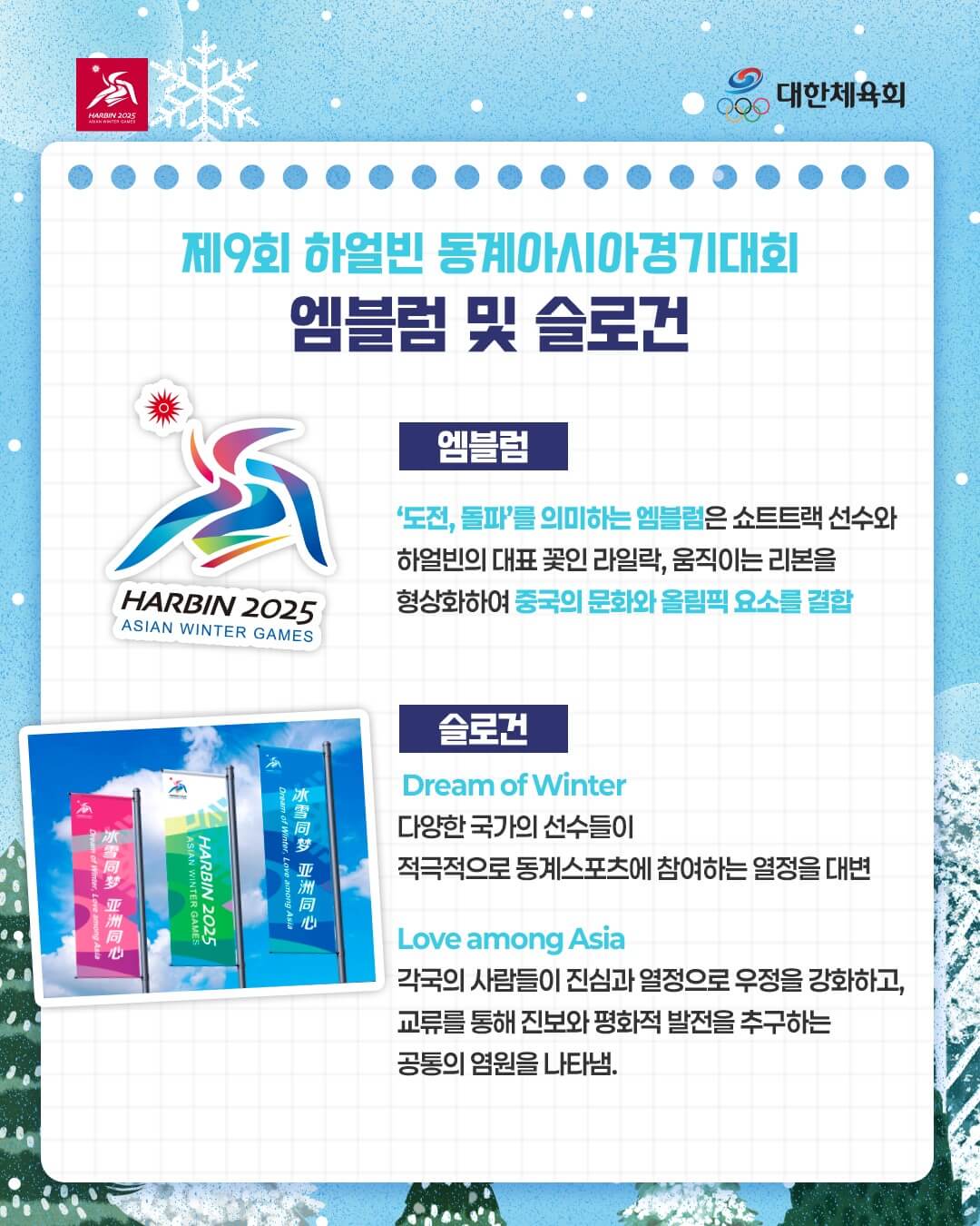 2025년 2월 7일부터 14일까지 중국 헤이룽장성 하얼빈시에서 제9회 동계 아시안 게임이 개최됩니다.